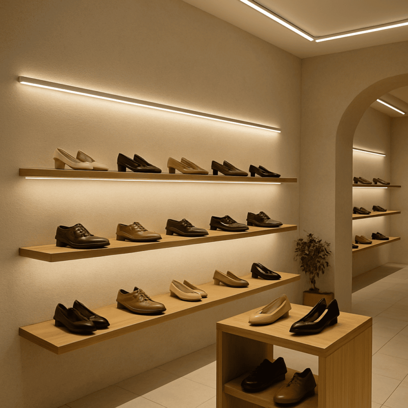 Cuando iluminas desde abajo o desde atrás, creas un efecto de “realce” visual que dirige automáticamente la atención hacia lo que más quieres destacar. Ideal para tiendas de ropa, tecnología, cosmética o gastronomía.